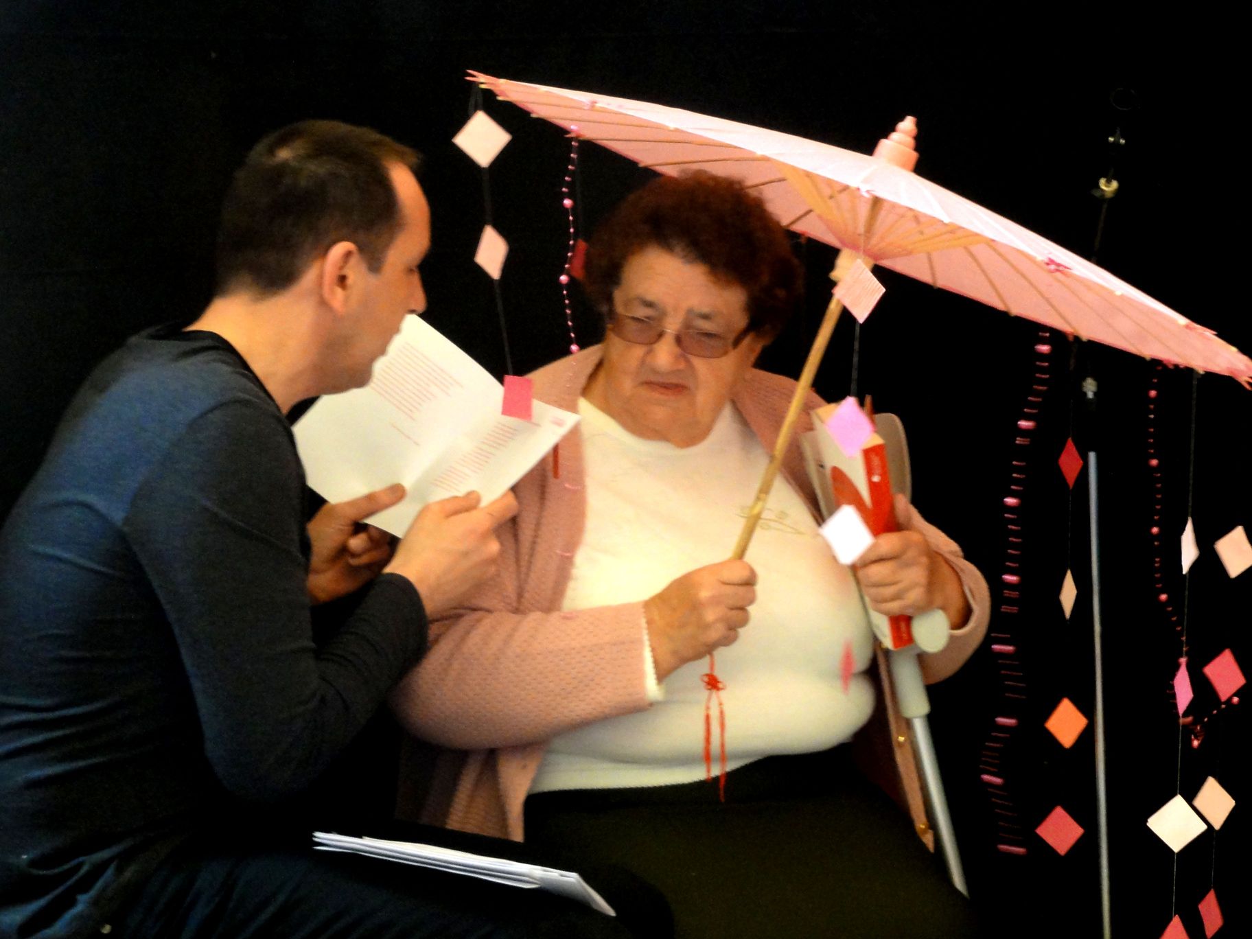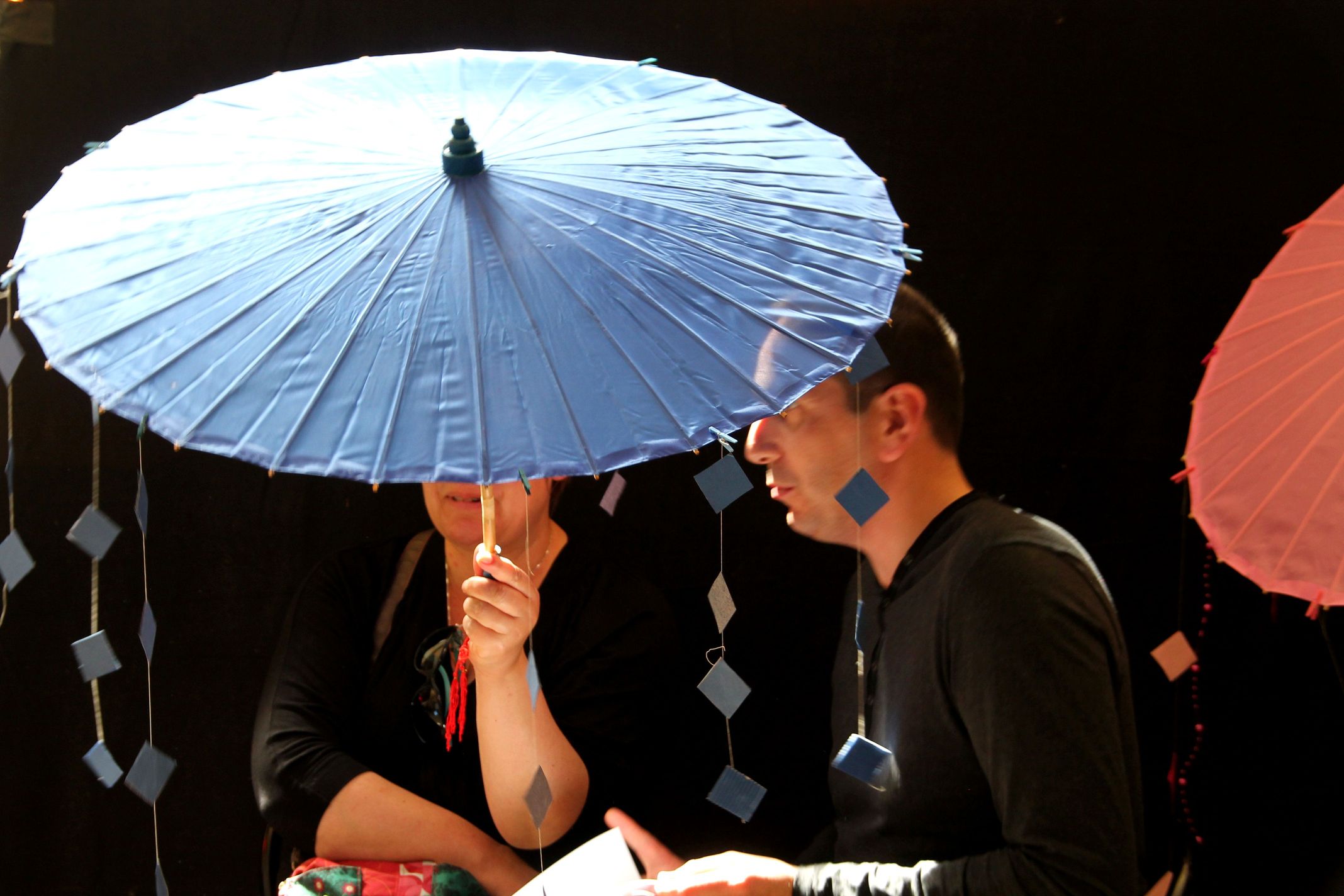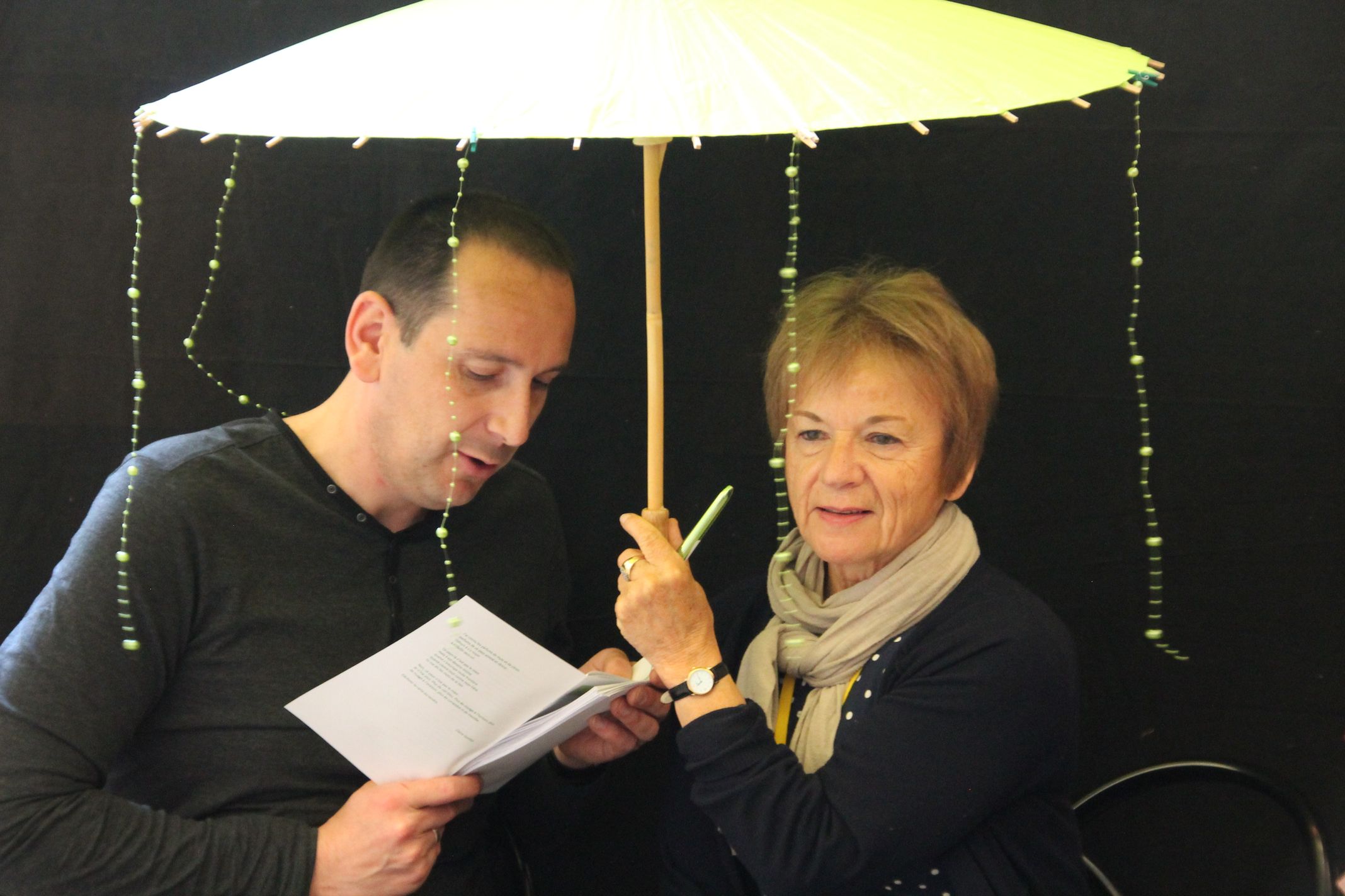 Étonnante et belle expérience, profonde, cela ressemble à un massage de l’âme par les mots qui s’écoulent sous l’ombrelle et dans son corps . A ne pas rater si vous les rencontrez !
