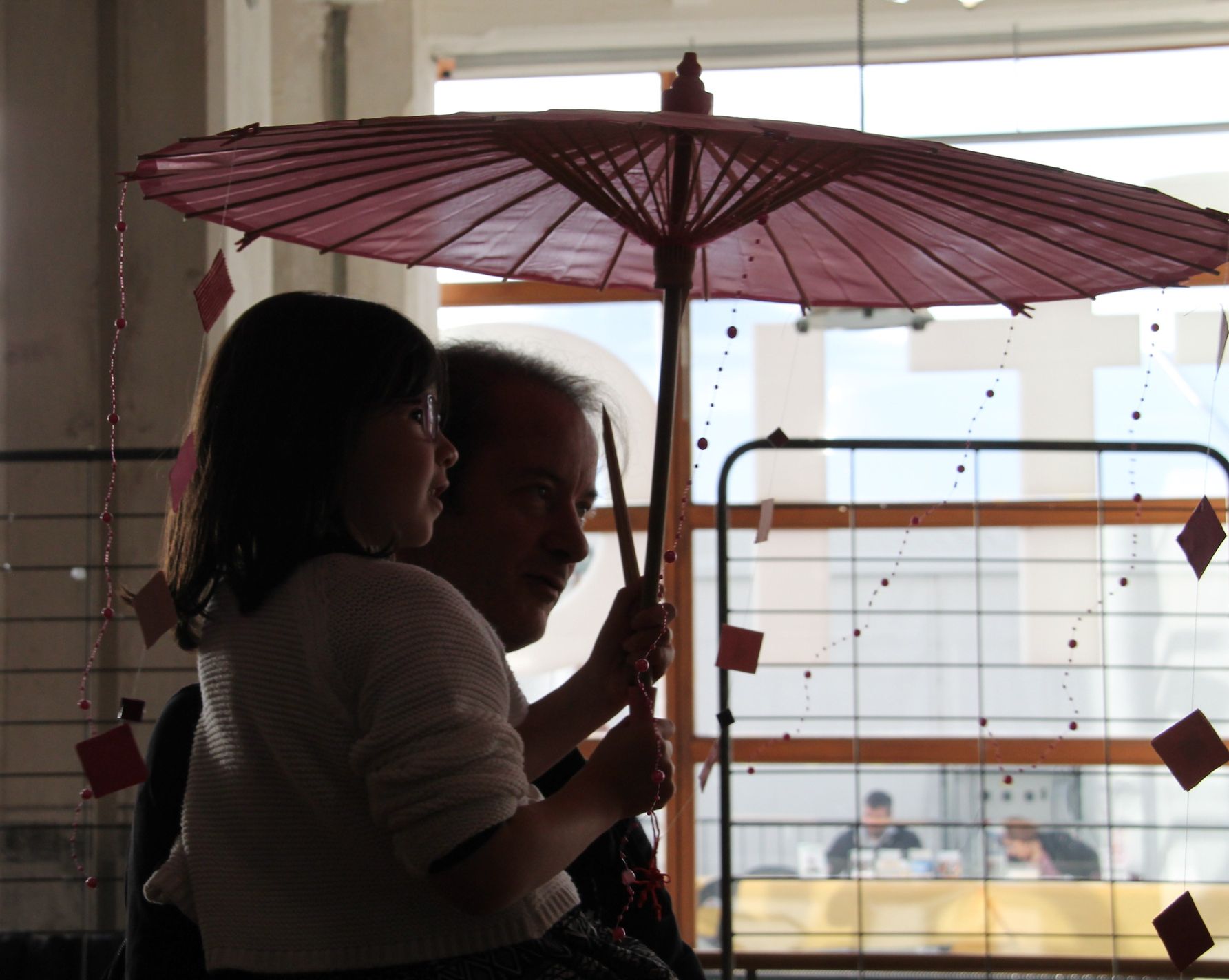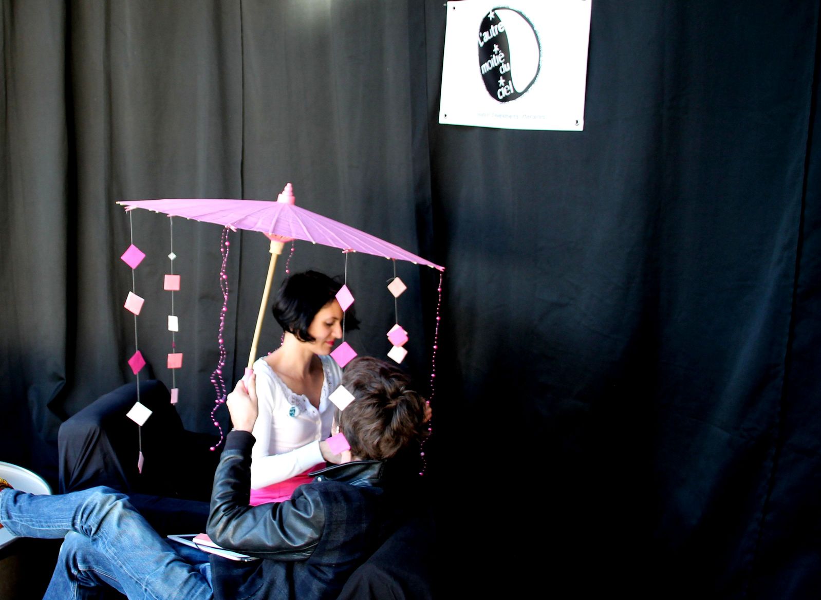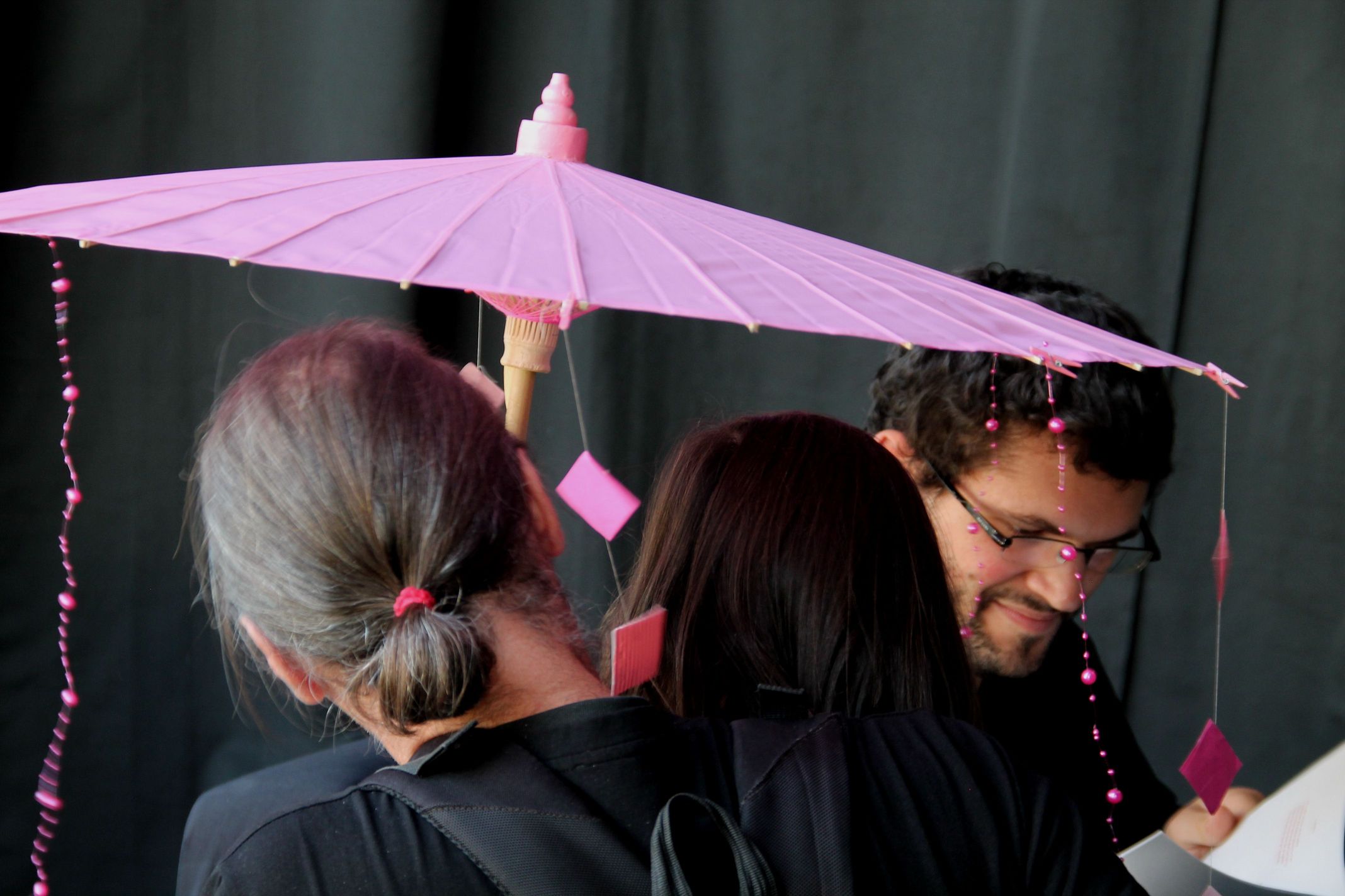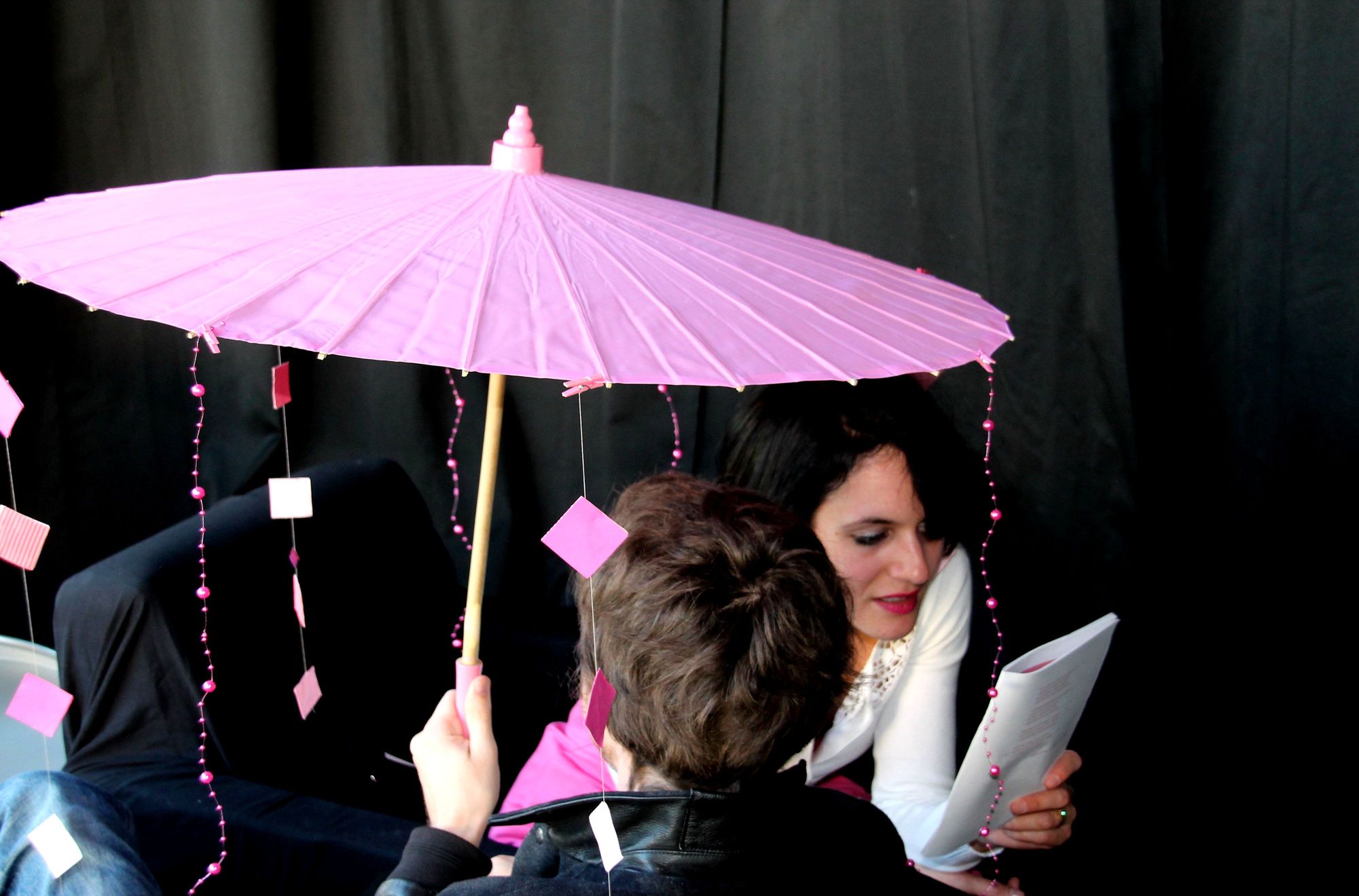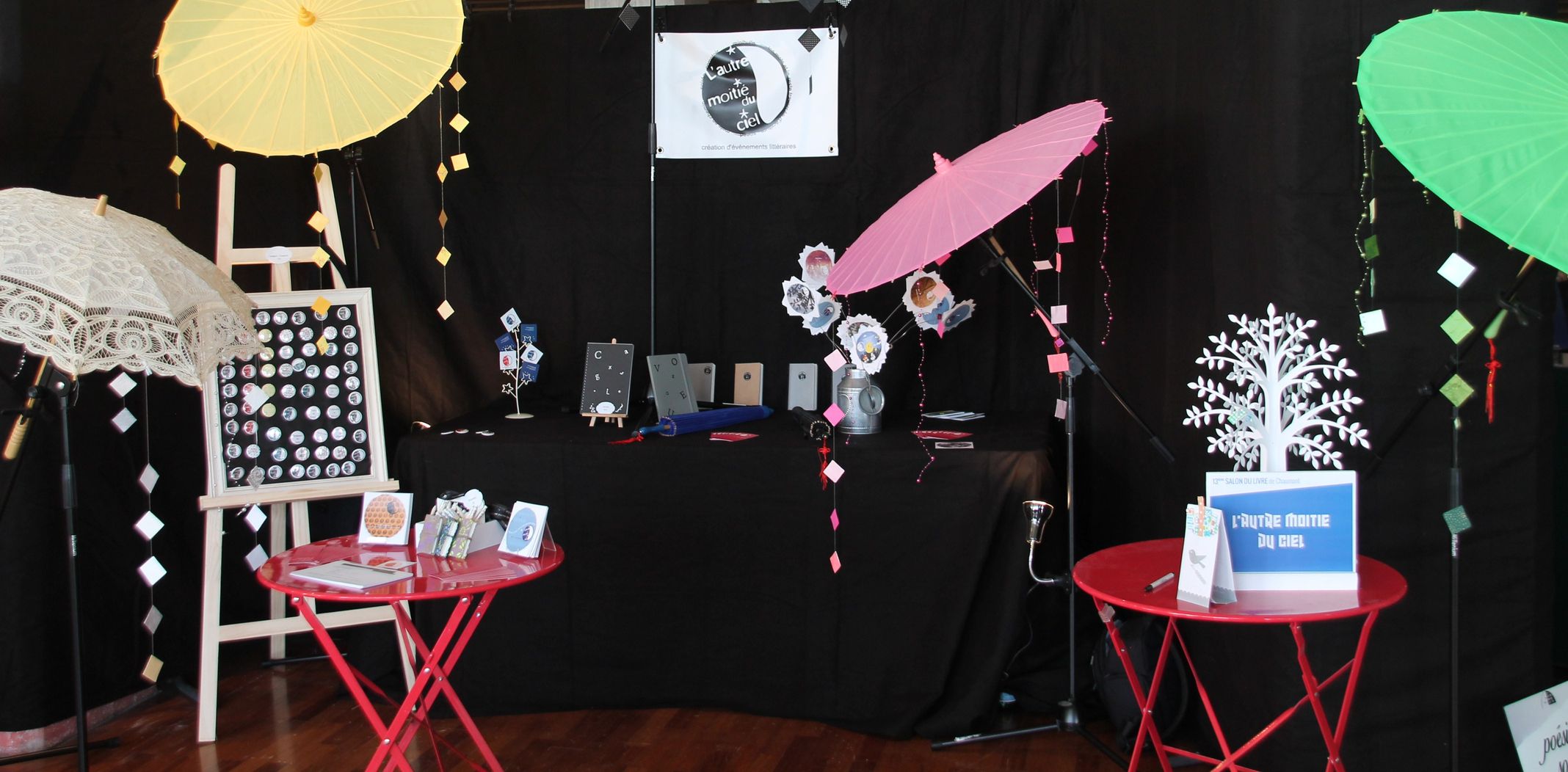 Dans l’effervescence du Salon du livre, entre une razzia au stand librairie et une séance de dédicace, glissez-vous un instant sous la protection d’une ombrelle colorée de l’association L’Autre moitié du ciel, et embarquez en douceur pour un voyage en poésie.