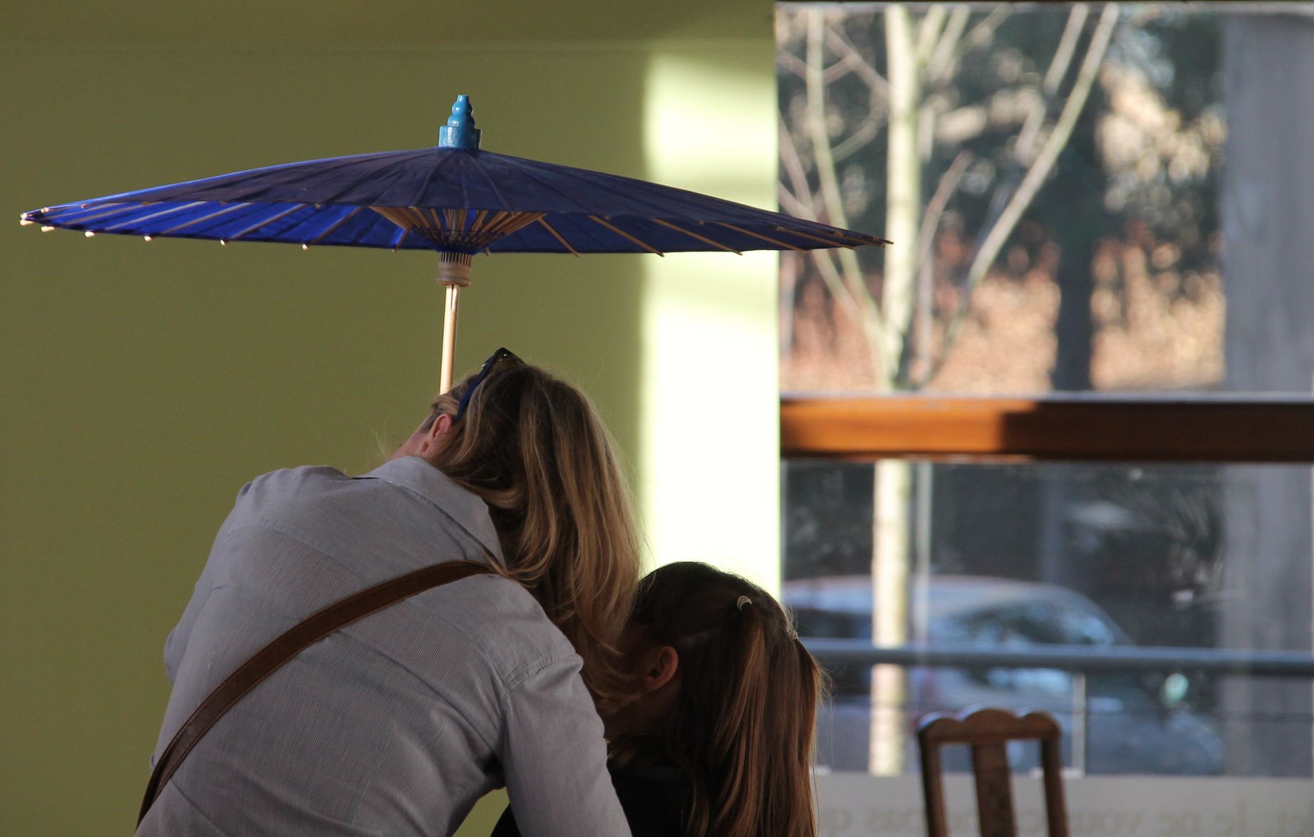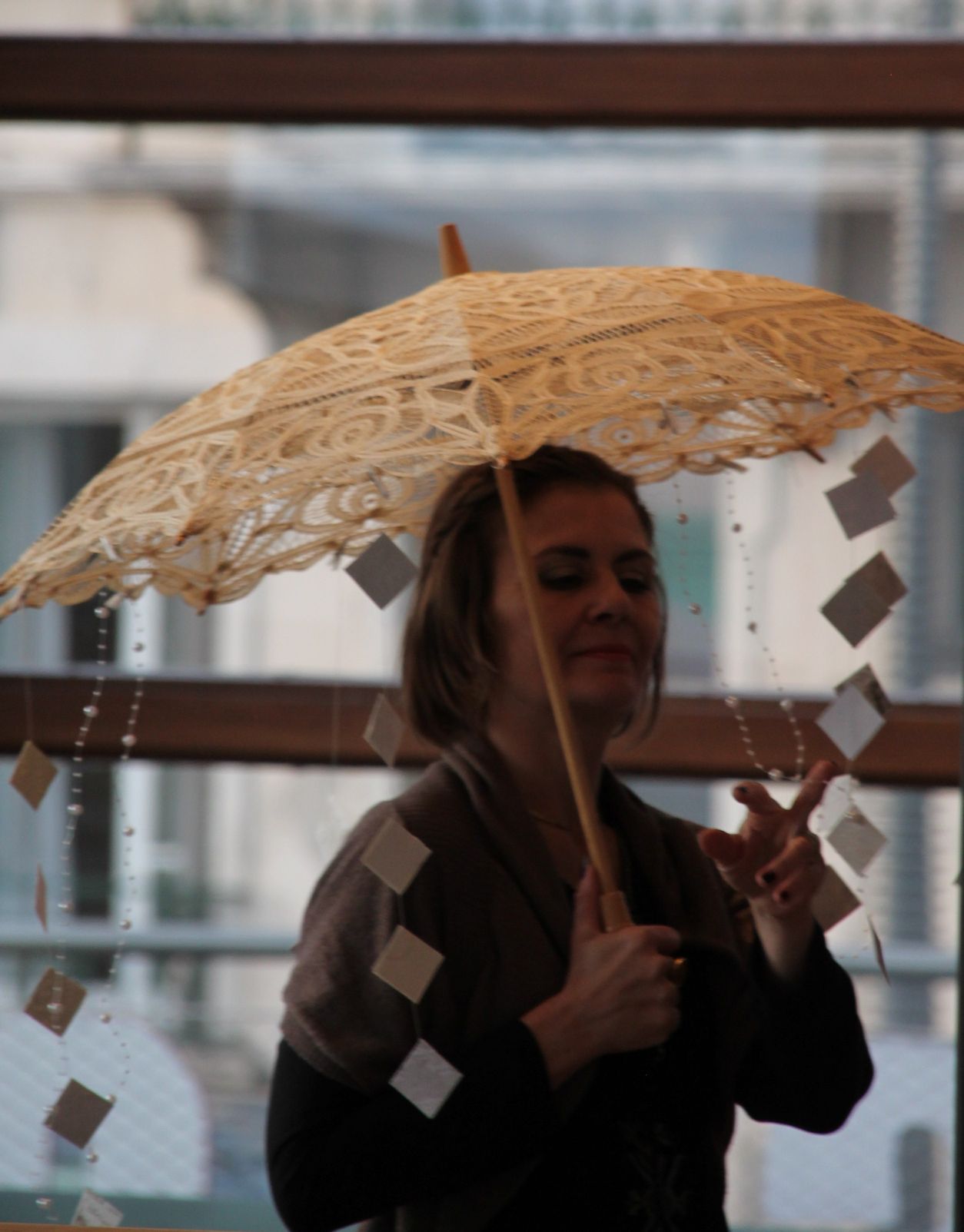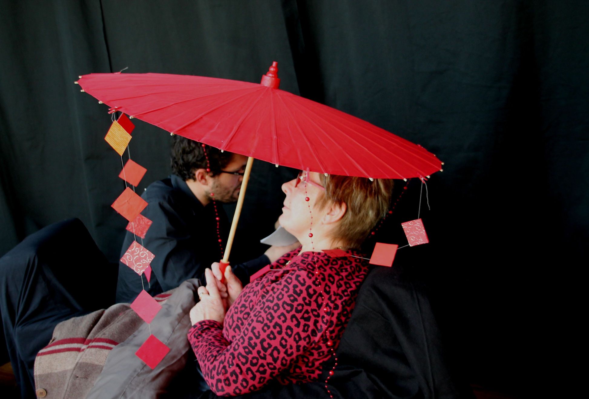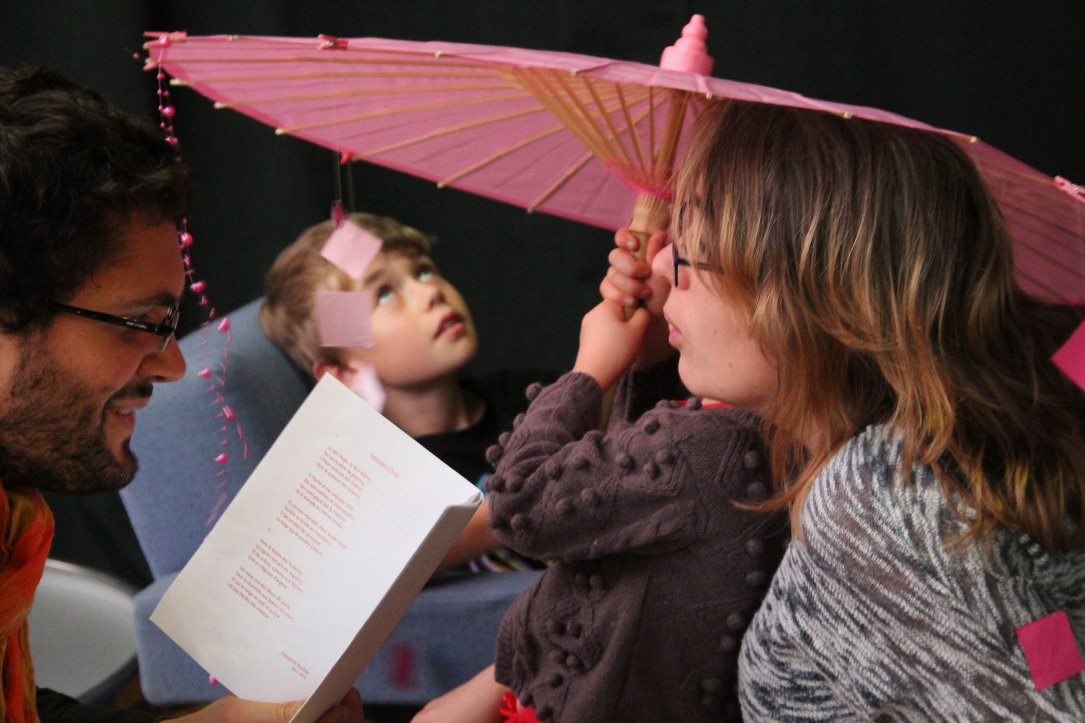 Dans l’effervescence du Salon du livre, entre une razzia au stand librairie et une séance de dédicace, glissez-vous un instant sous la protection d’une ombrelle colorée de l’association L’Autre moitié du ciel, et embarquez en douceur pour un voyage en poésie.