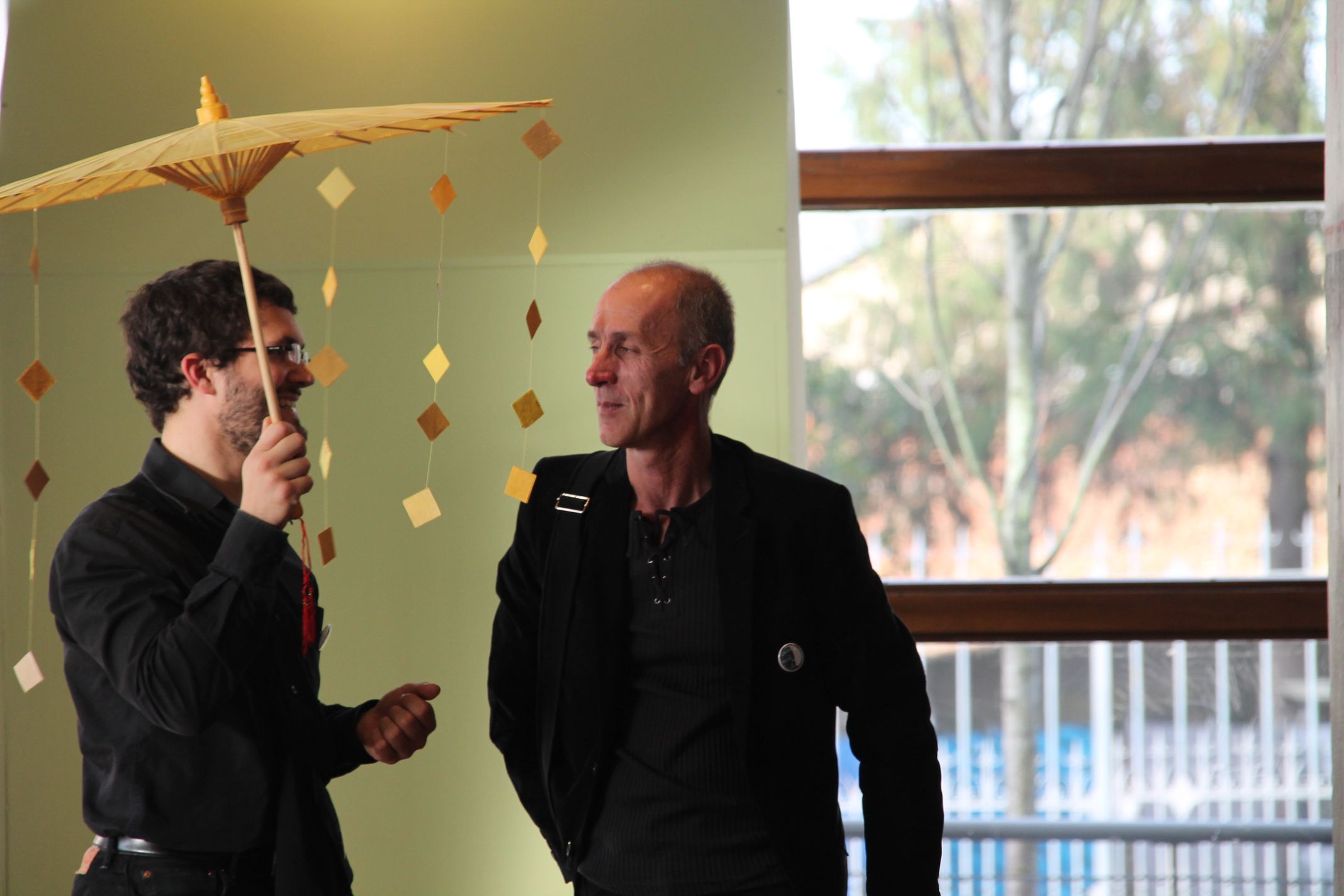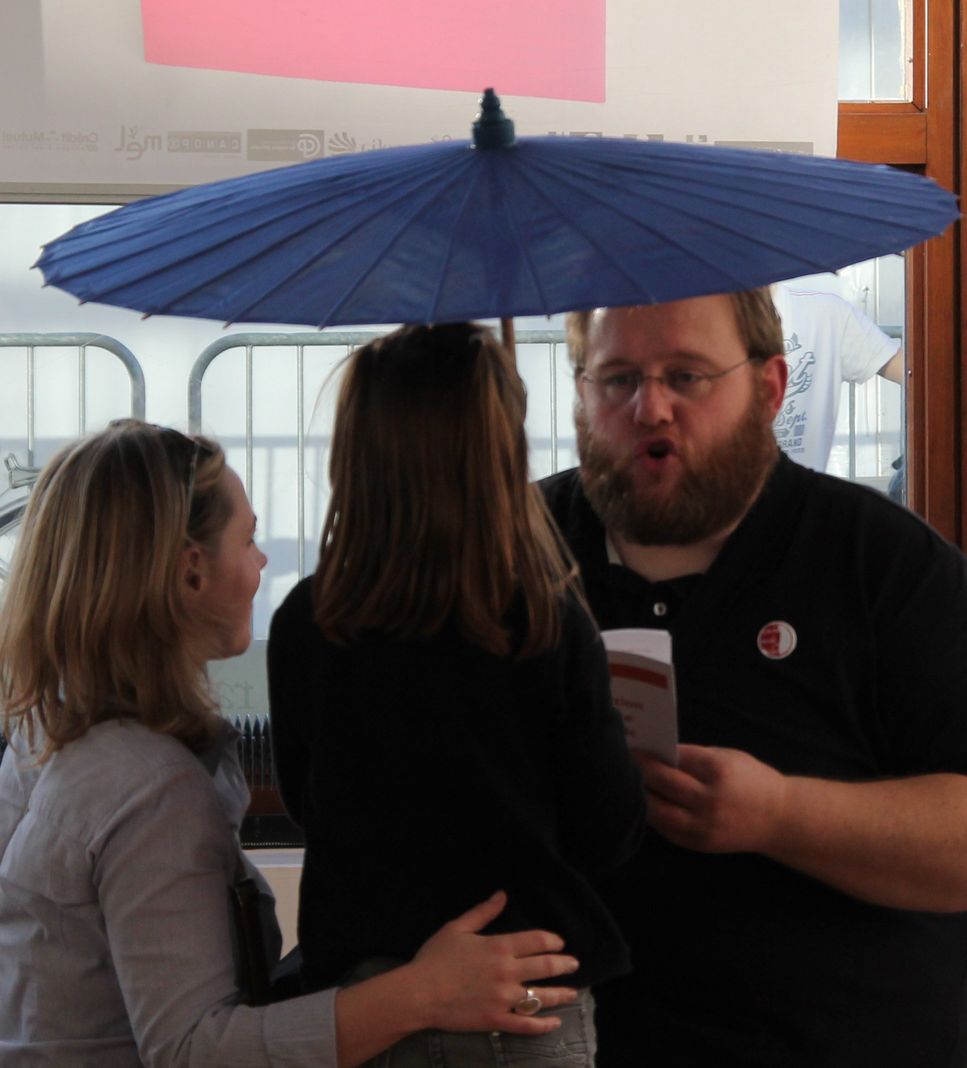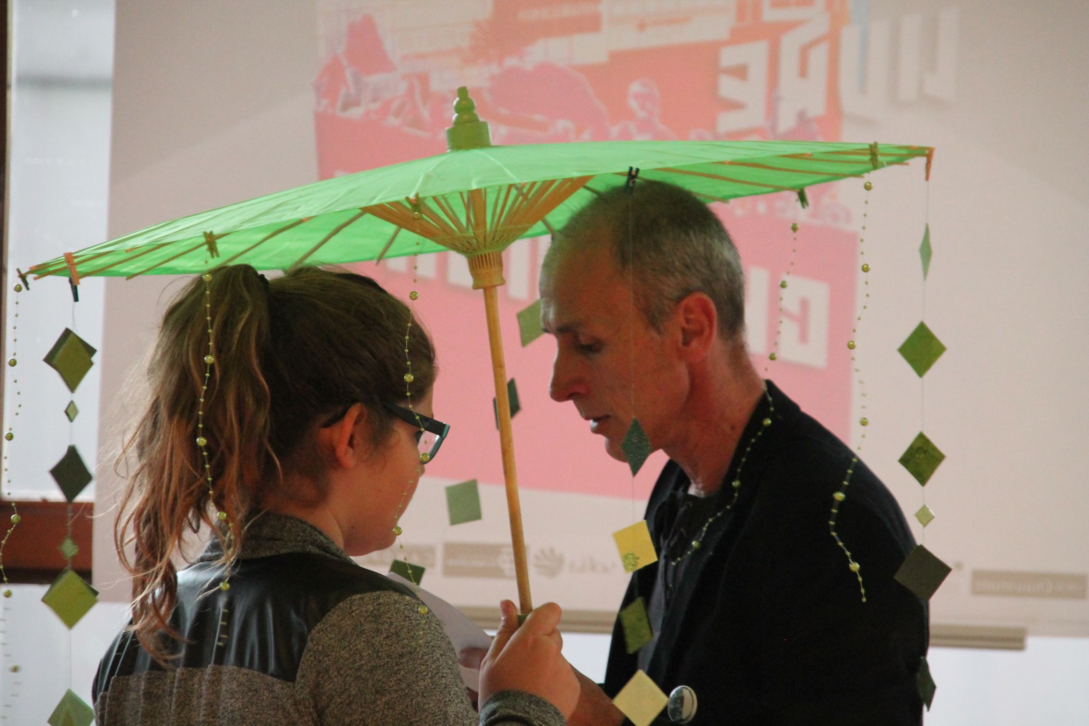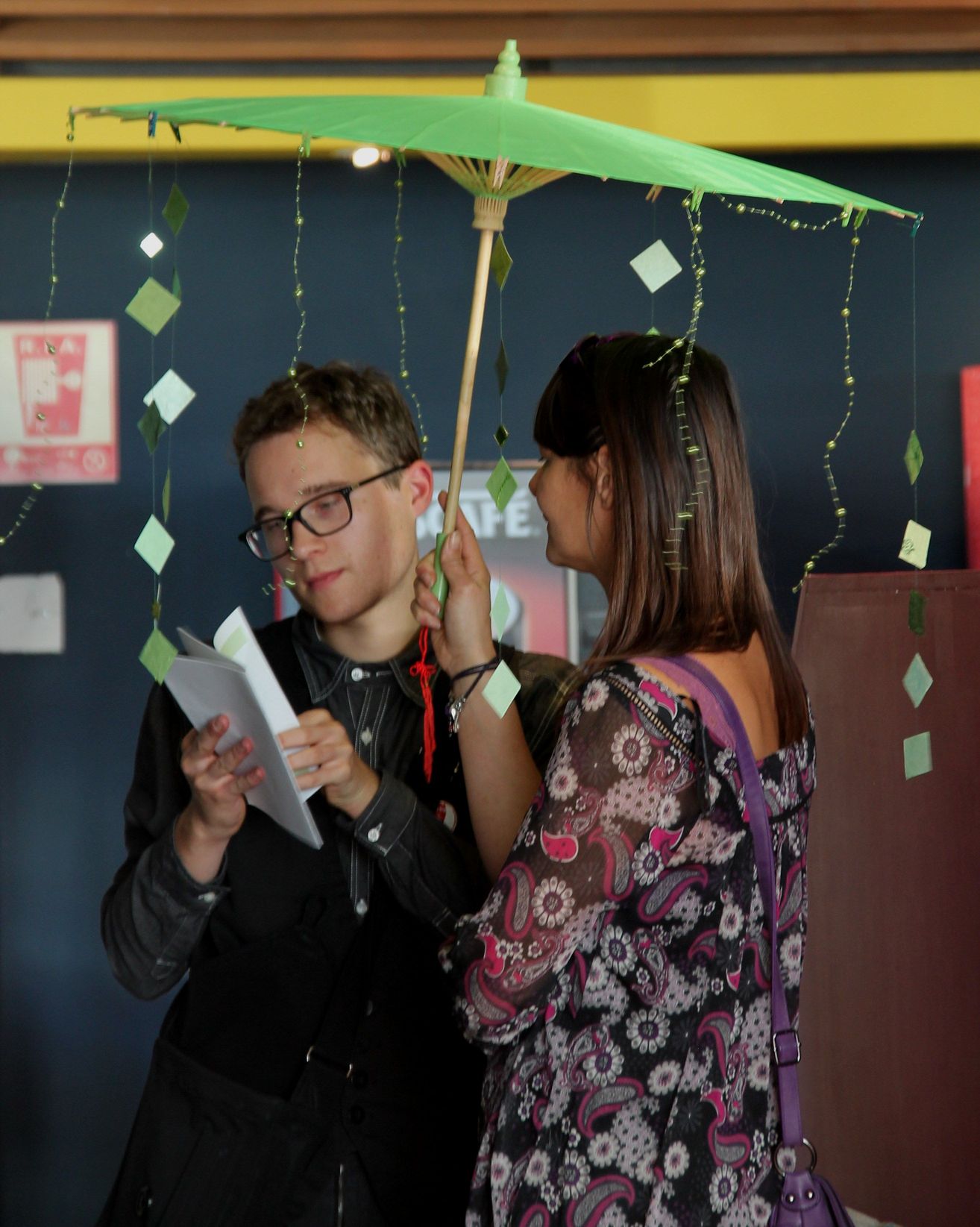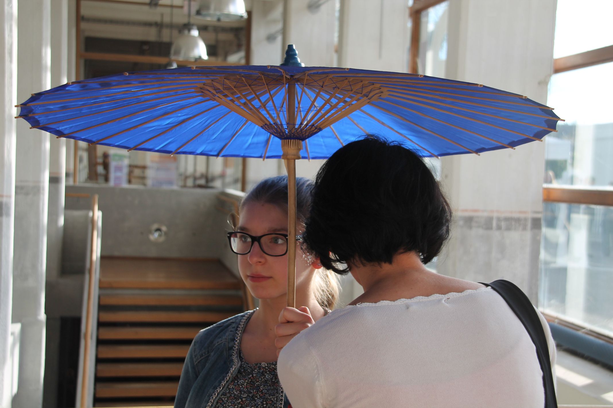 Dans l’effervescence du Salon du livre, entre une razzia au stand librairie et une séance de dédicace, glissez-vous un instant sous la protection d’une ombrelle colorée de l’association L’Autre moitié du ciel, et embarquez en douceur pour un voyage en poésie.