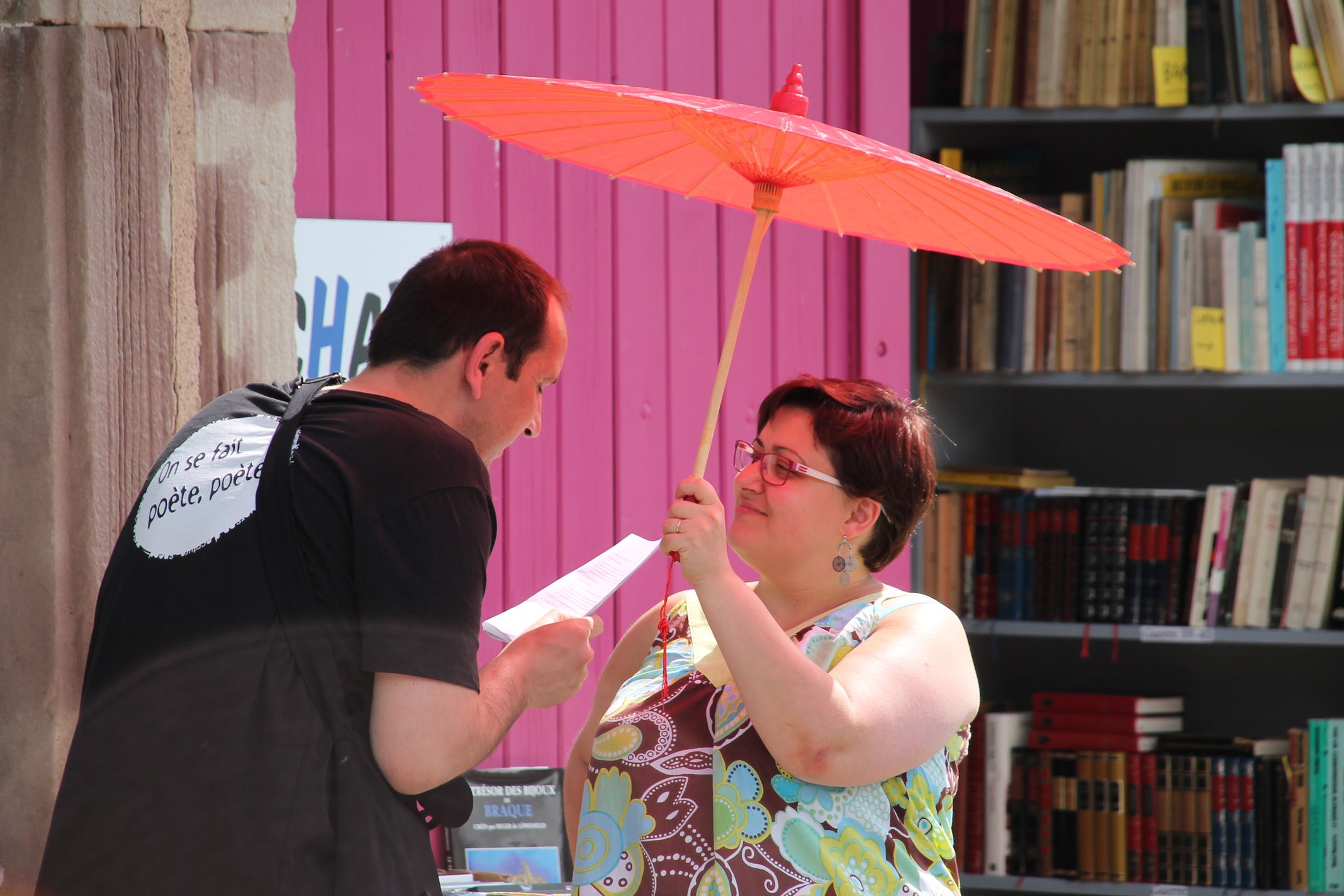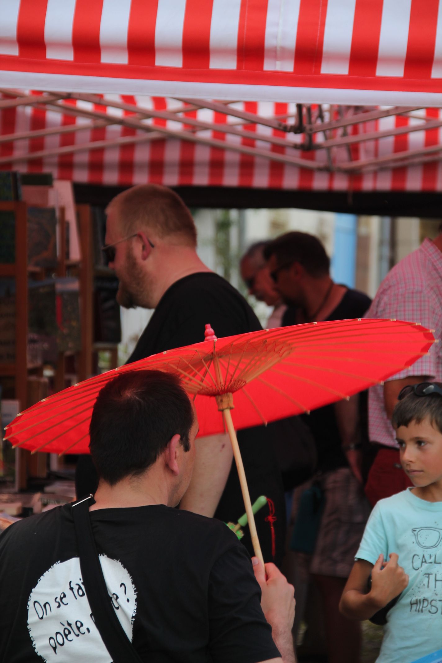 Les ombrelles murmurèrent des poèmes à l’oreille des passants, circulant parmi les étals des libraires, les tables des antiquaires et dans les boutiques des bouquinistes, pour le plus grand bonheur des petits et des grands !