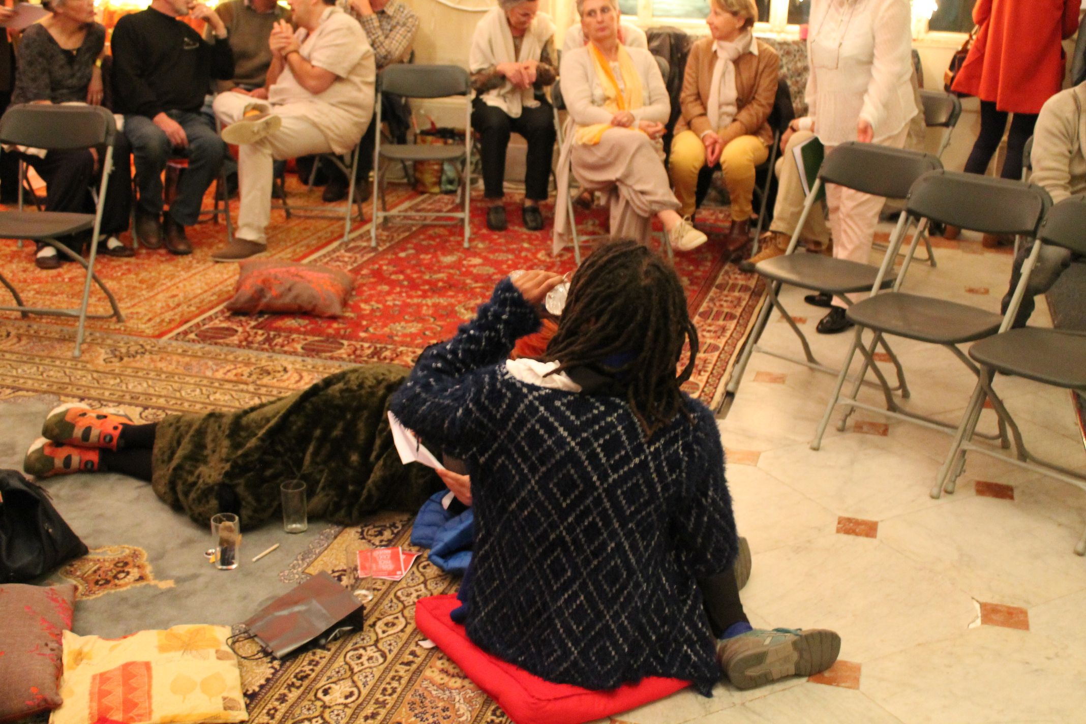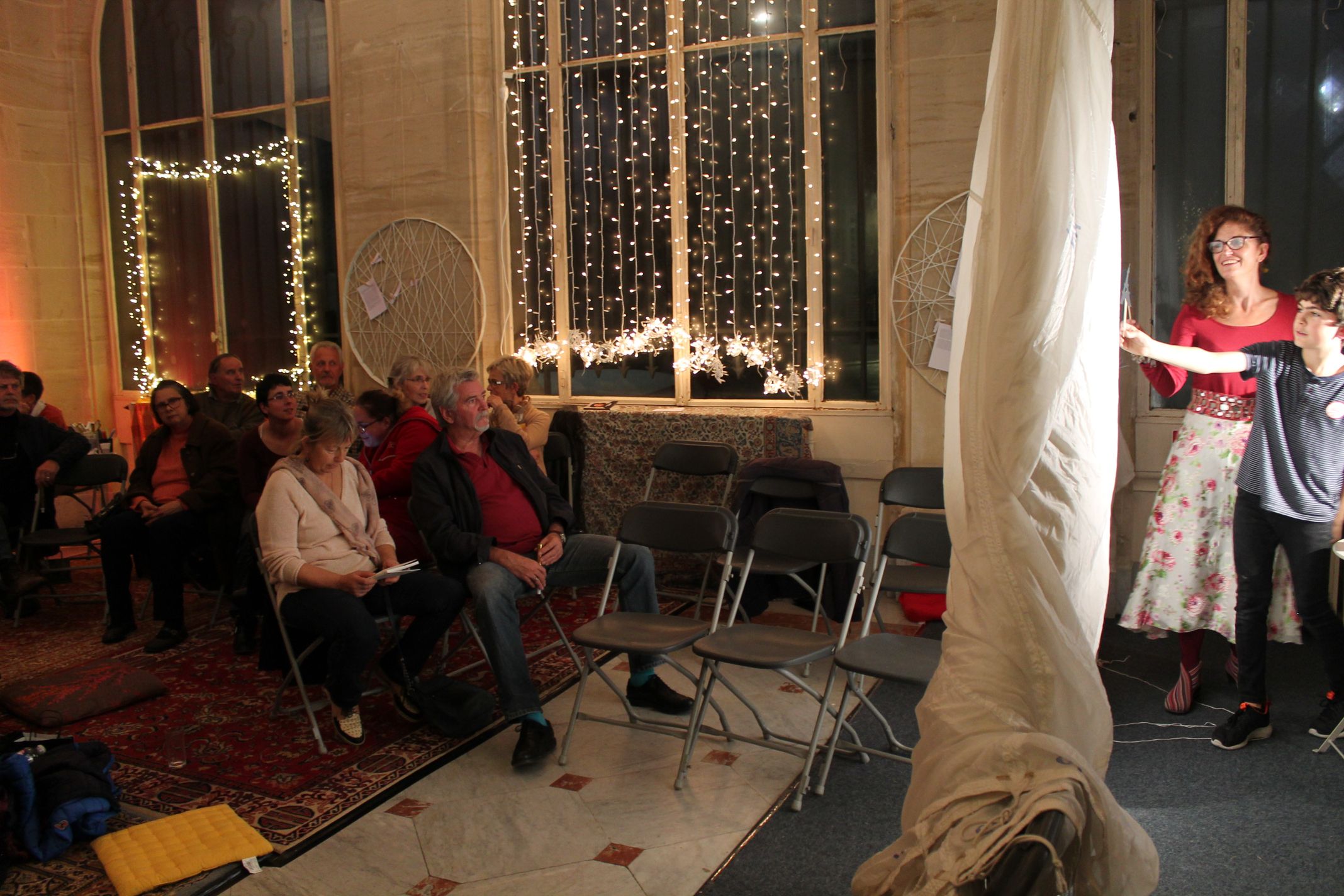 Dans l’ancienne Caisse d’Epargne de Langres redécorée en palais des Mille et Nuit, nous avons lu, écouté, écrit, chanté, fabriqué, tatoué et mangé aux couleurs de l’Orient !