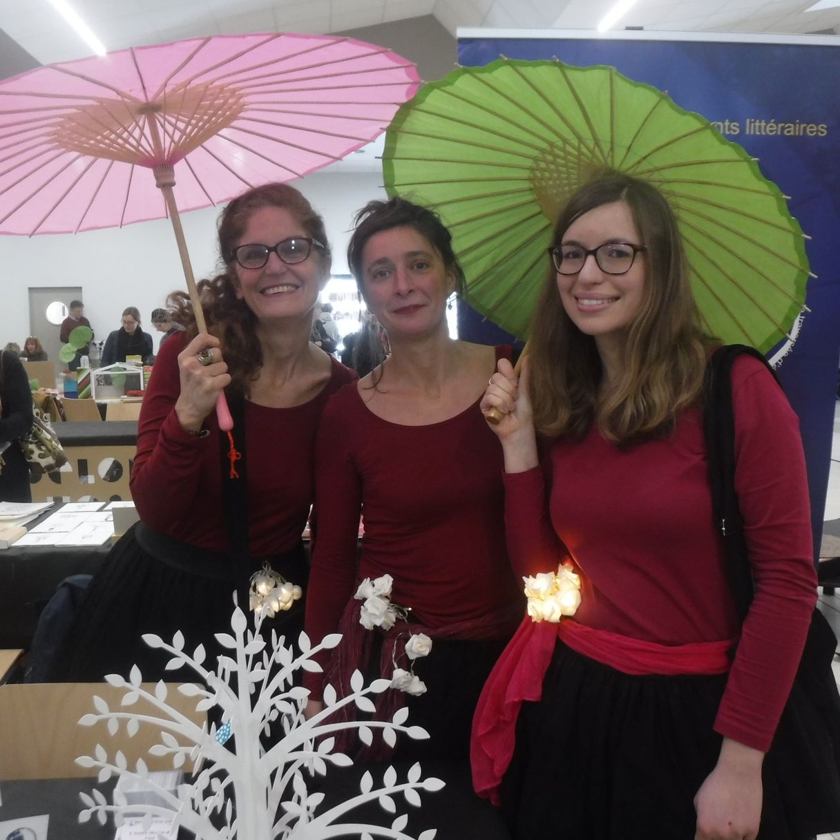 Au Salon du Livre de Chaumont, le public a pu jouer à un quizz littéraire avec Fabienne et Jean-Michel, les animateurs radio fantasques incarnés par Emmanuelle Vein et Jérôme Hudeley de la Cie Ca Change un Peu, et s’est laissé porté par les poésies murmurées sous les ombrelles de couleur…