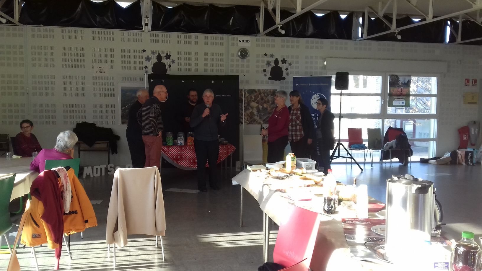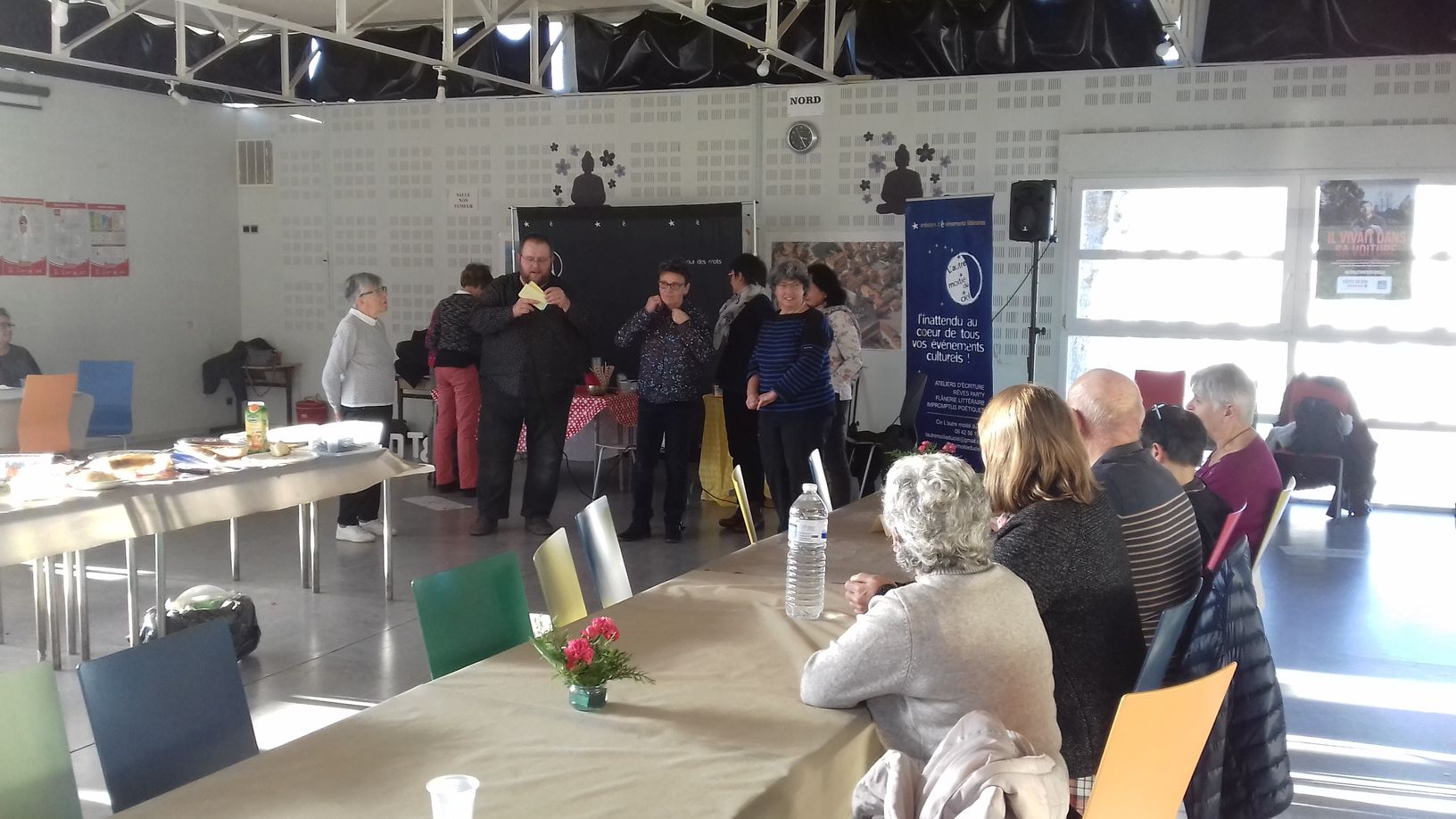 Défi accepté ! Au programme : lectures, petite mise en jambe littéraire, Bar à Mots (avec la participation remarquée de la doyenne de la salle, 99 ans au compteur !) et joûte verbale opposant les défenseurs du gant et ceux de la moufle…